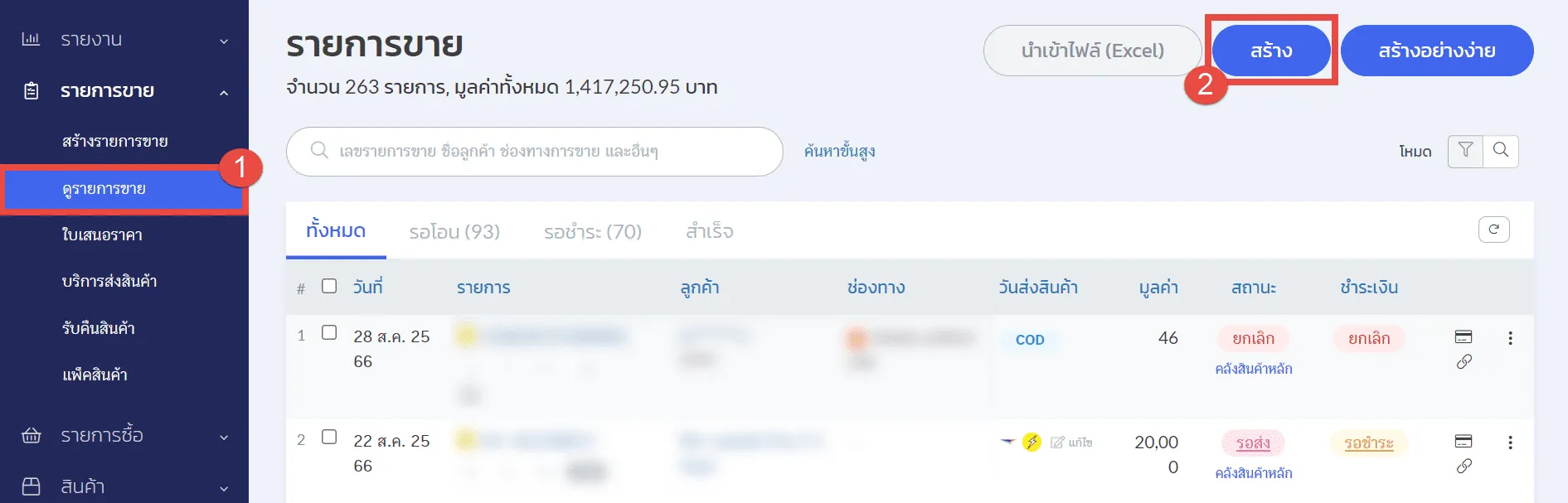 1. ไปที่เมนู “รายการขาย” หัวข้อ “ดูรายการขาย”