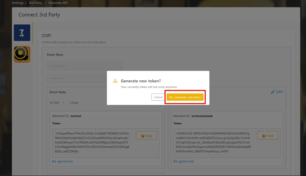 2. เลือก Re-generate เพื่อเปลี่ยน Token ที่ใช้เชื่อมต่อ