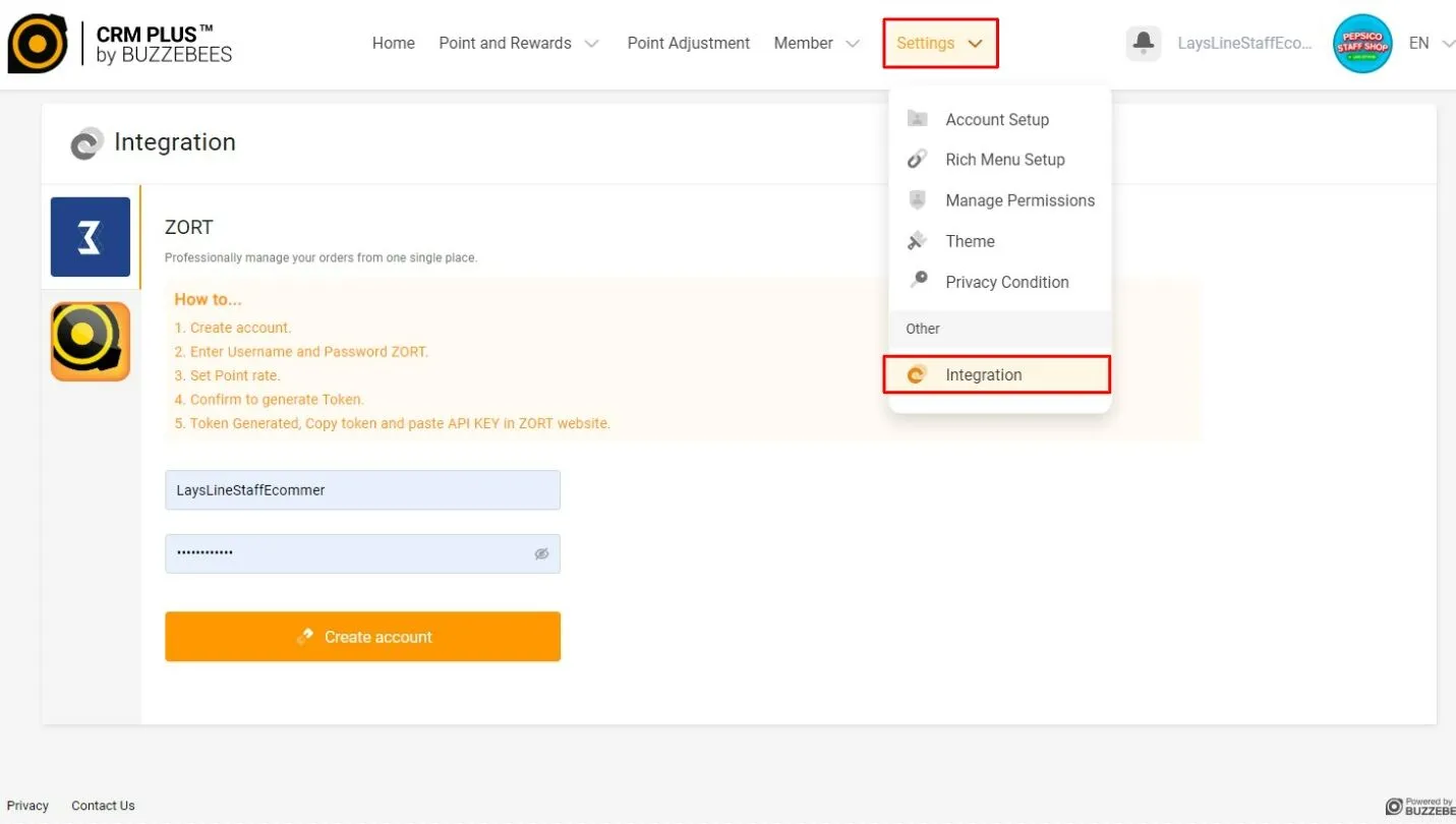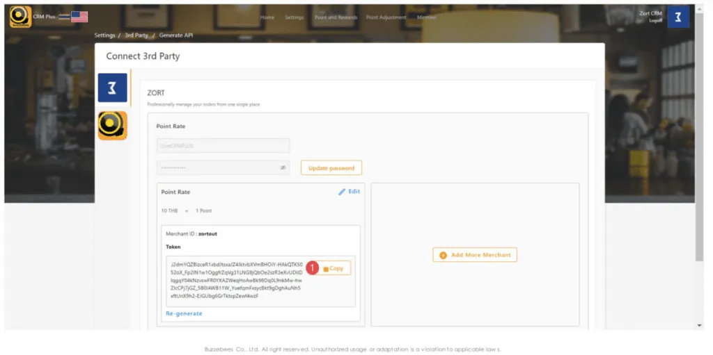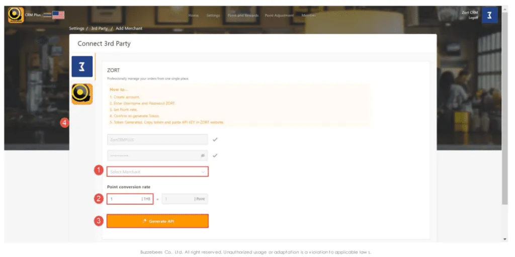4. เลือก CRM Plus ระบบจะแสดงหน้าสำหรับเชื่อมต่อระบบ CRM Plus ซึ่งต้องใช้ API Key จากระบบ Buzzebees สำหรับการเชื่อมต่อ