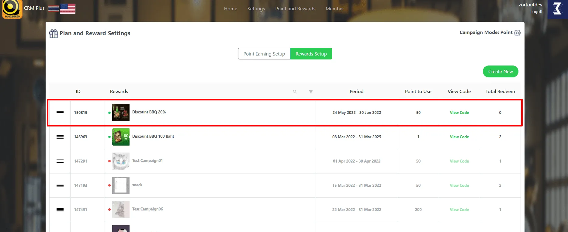 4. ระบบจะสร้าง reward ใหม่ขึ้นมา เพื่อใช้แลกของรางวัล ดูข้อมูลได้ในหน้า Rewards Setup