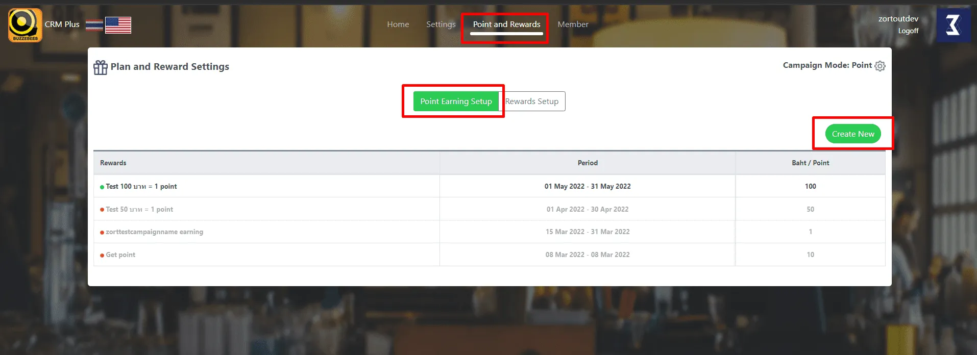 2. ไปที่เมนู Point and Rewards เลือก Point Earning Setup