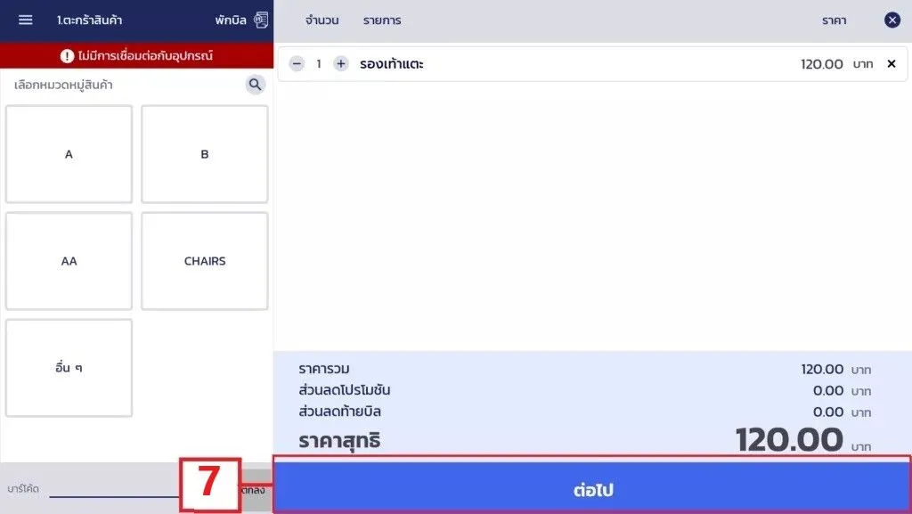 7. กดปุ่ม “ต่อไป” เพื่อเริ่มทำการเช็คเอาท์