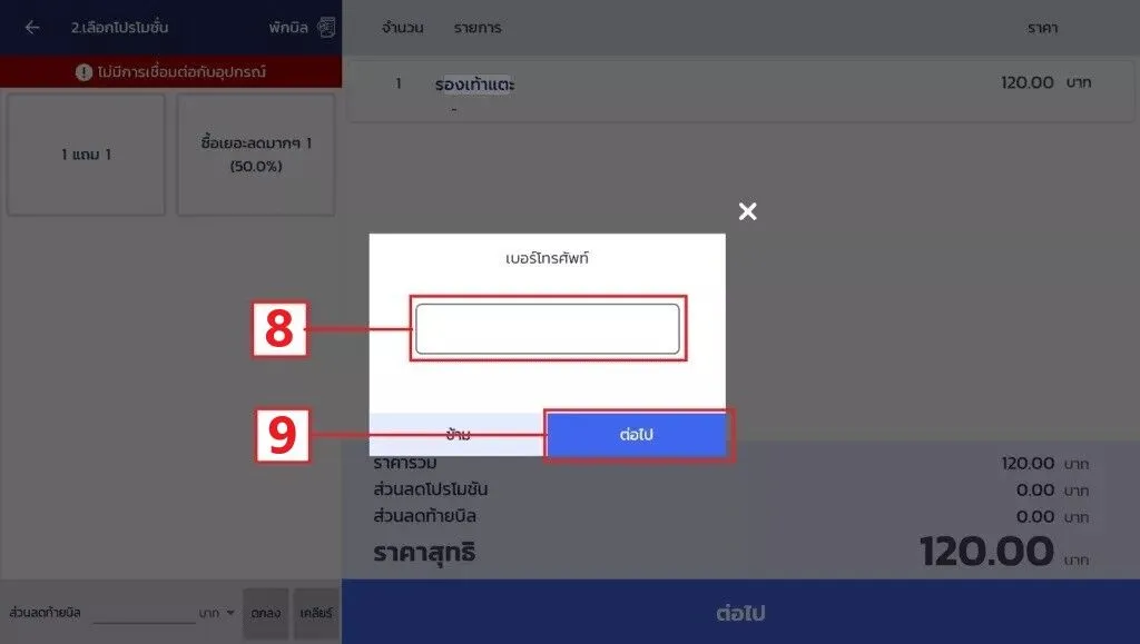 8. ระบุเบอร์โทรศัพท์ลูกค้า