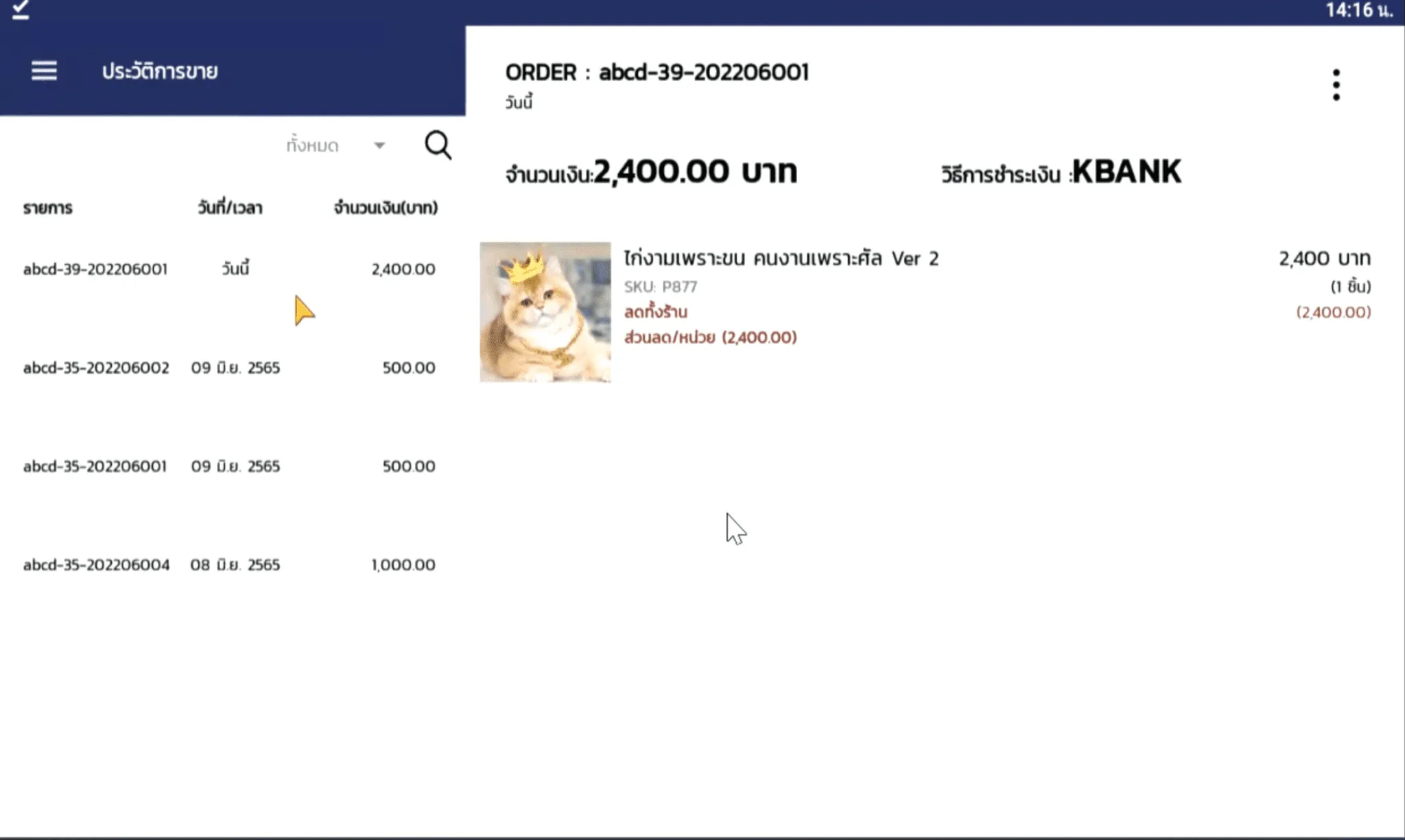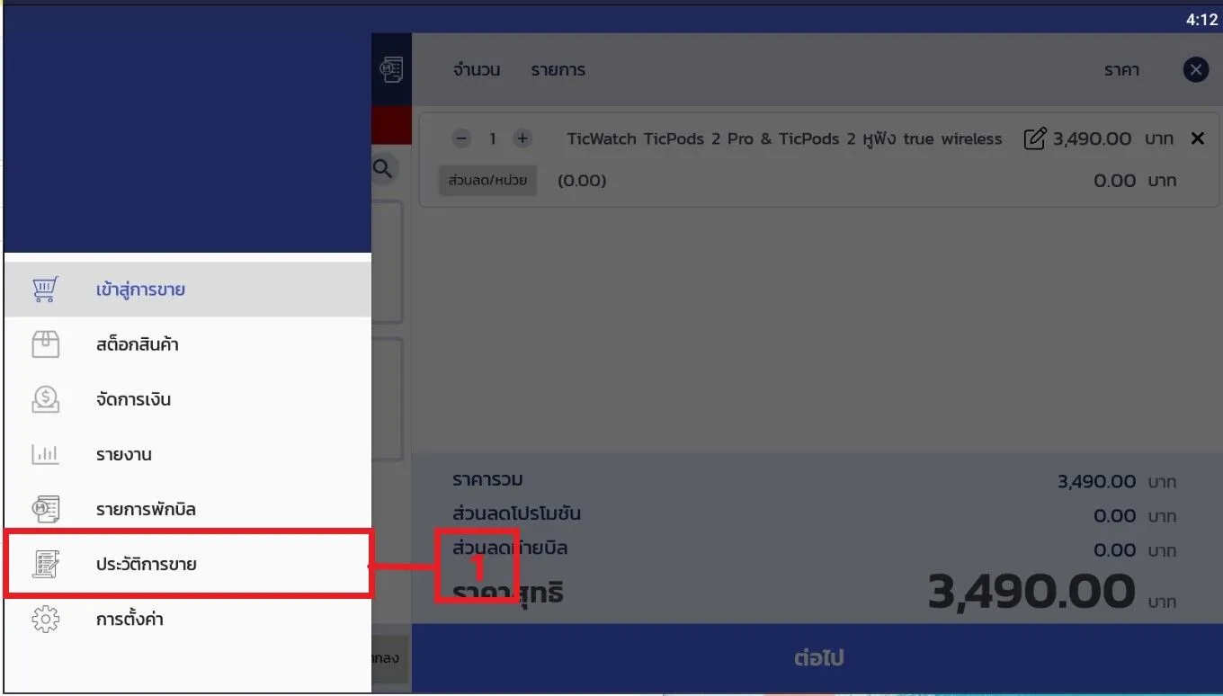 เมื่อสร้างรายการขายเสร็จเรียบร้อยแล้ว สามารถกลับมาตรวจสอบประวัติการขายว่าได้ขายอะไรไปบ้าง