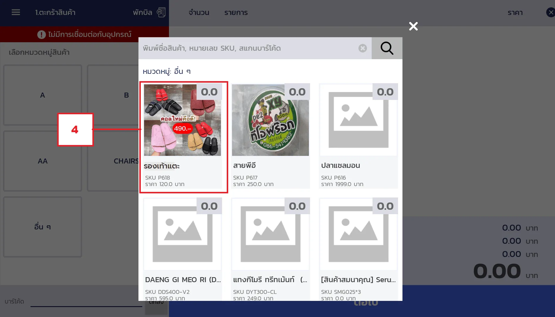 ร้านค้าสามารถใช้งานระบบ ZORT POS ผ่าน Tablet โดยเริ่มขายสินค้า ที่ Application ZORT POS ซึ่งมีขั้นตอนการขายสินค้าดังต่อไปนี้
