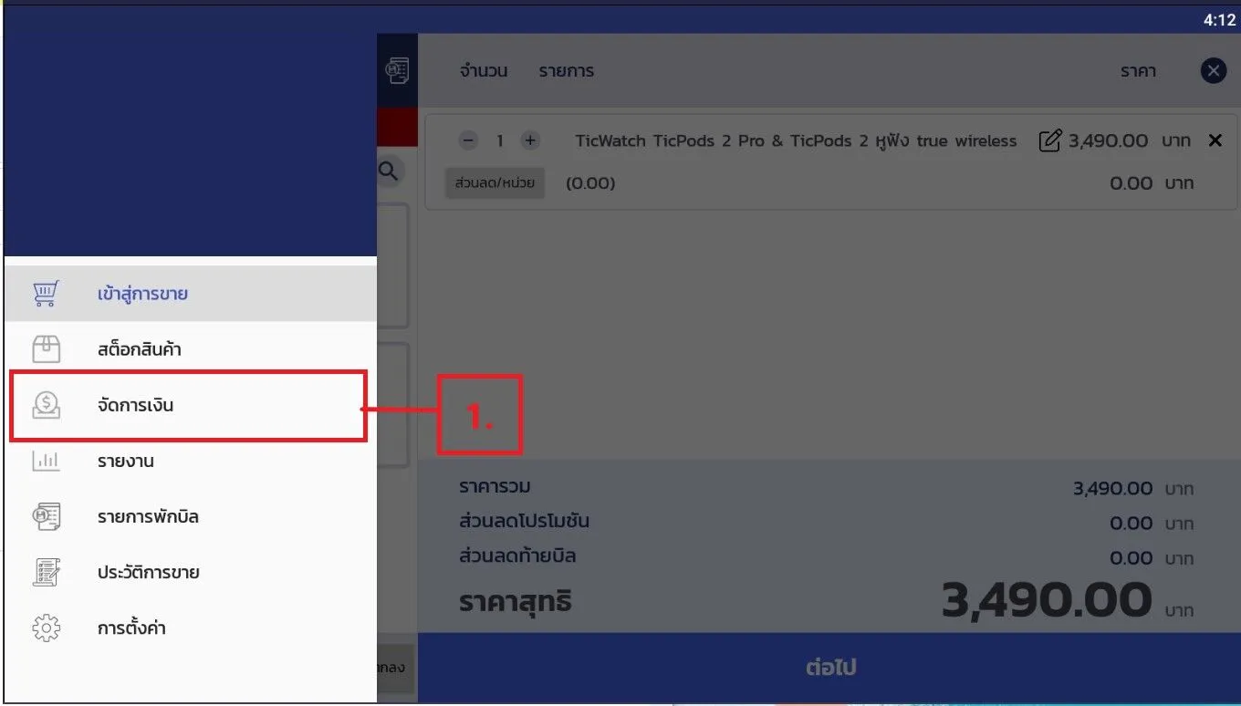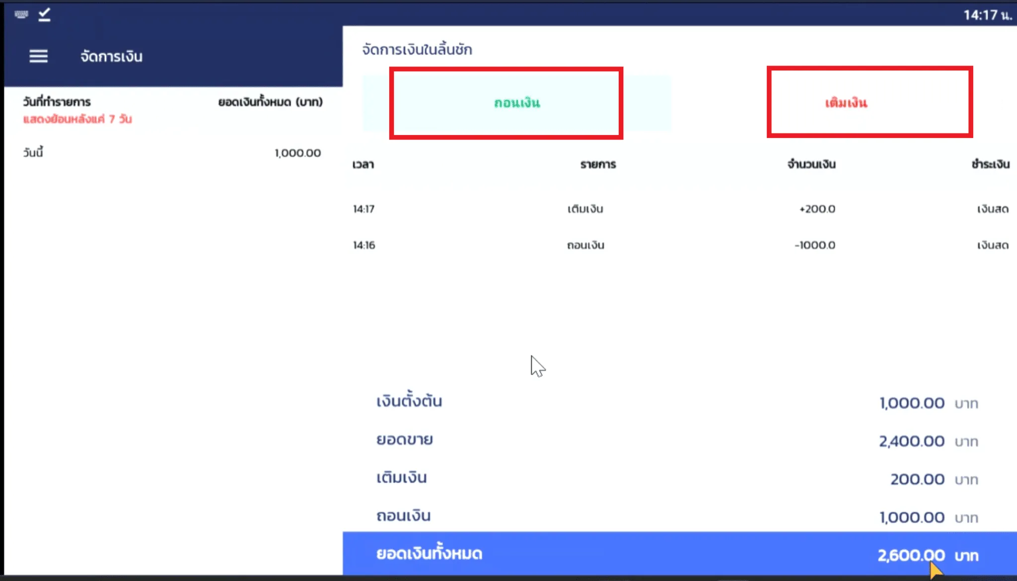 2. เช็คยอดเงินและจัดการเงินในลิ้นชักได้ด้วยเมนู