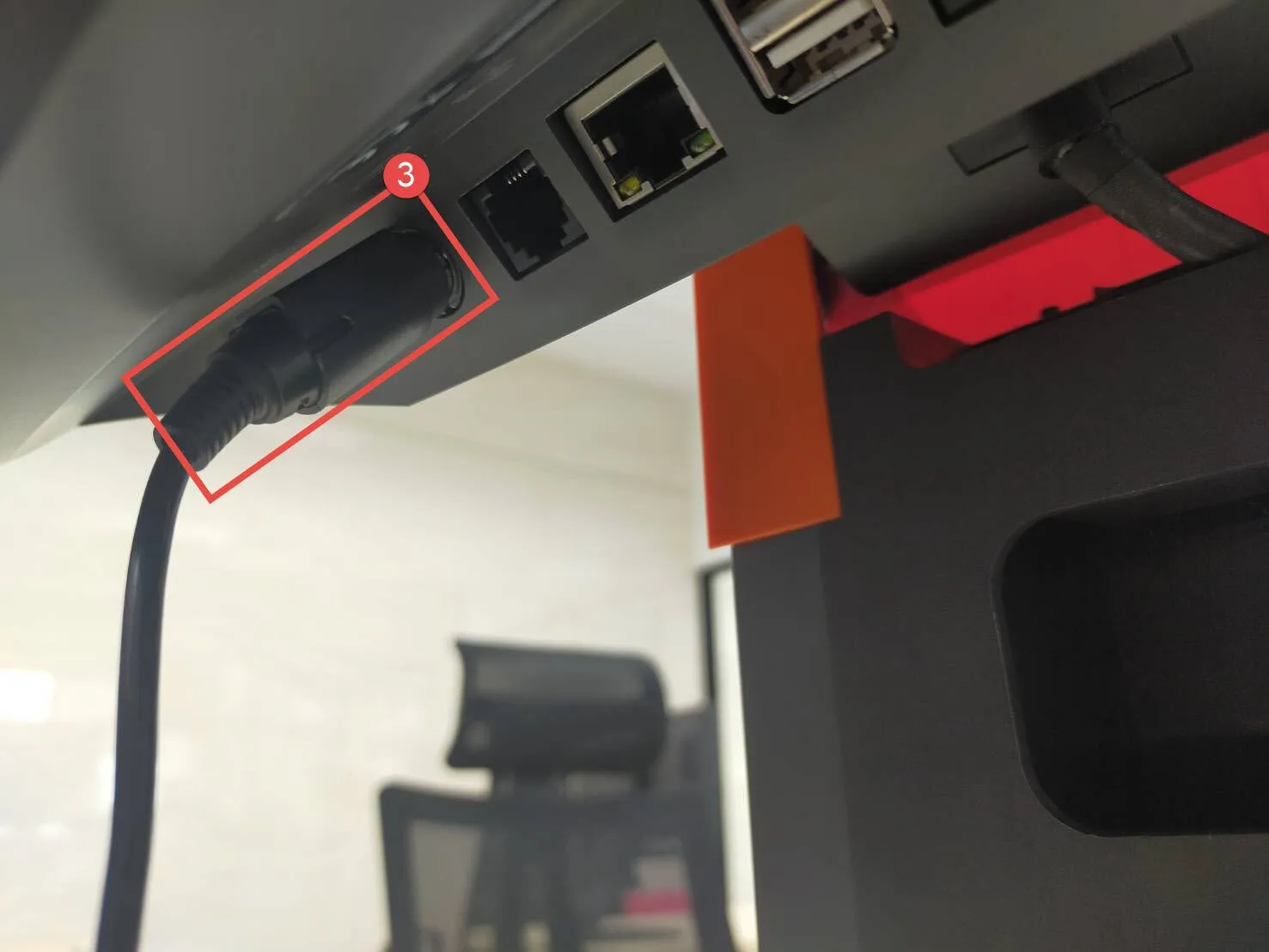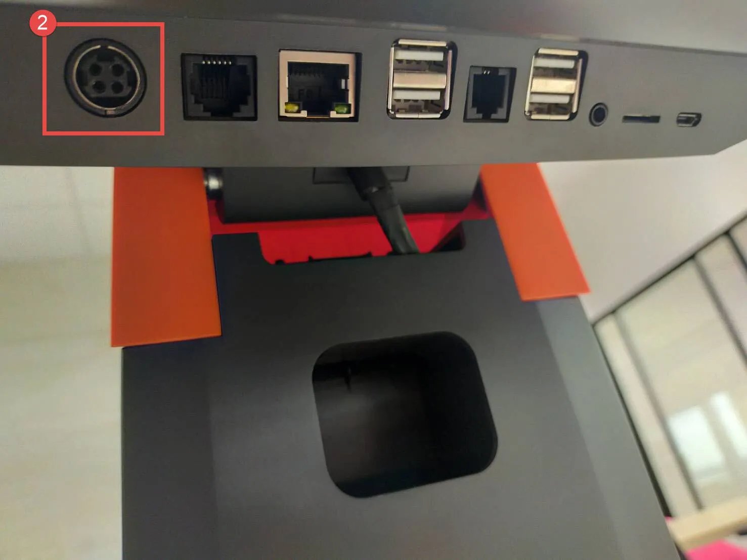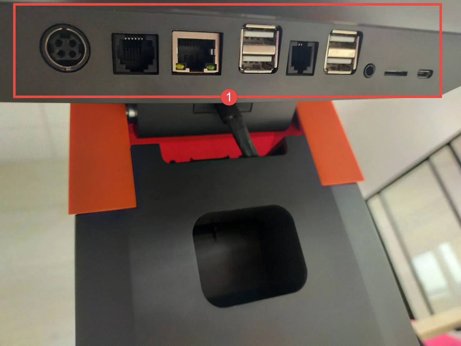 1. ช่องสำหรับเสียบสายต่าง ๆ จะอยู่ทางด้านหลังของหน้าจอ POS
