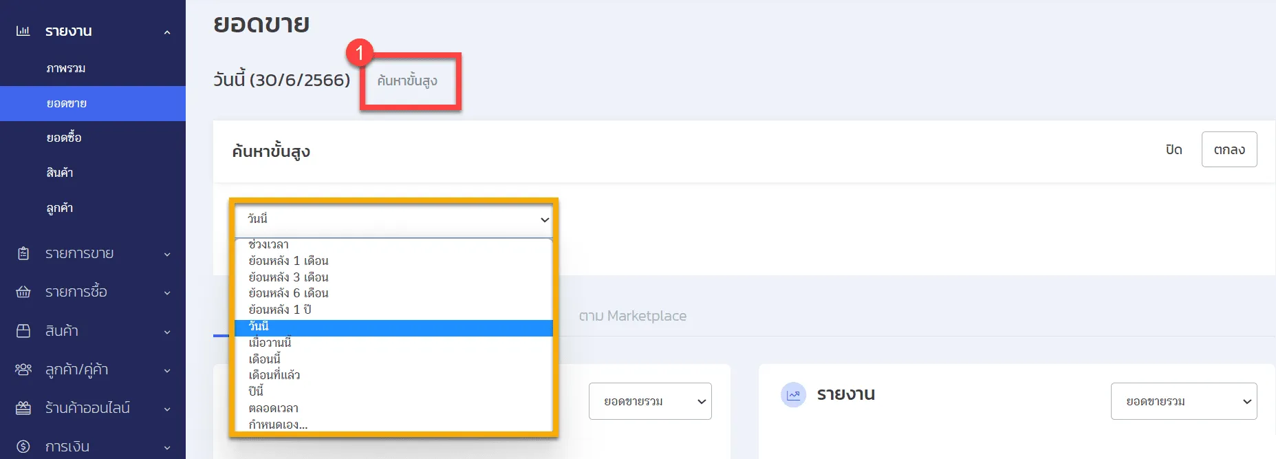 1. ค้นหาขั้นสูง : สามารถเลือกวันที่ที่ต้องการดูข้อมูลได้ โดยกดค้นหาขั้นสูง และเลือกช่วงเวลาตามต้องการ