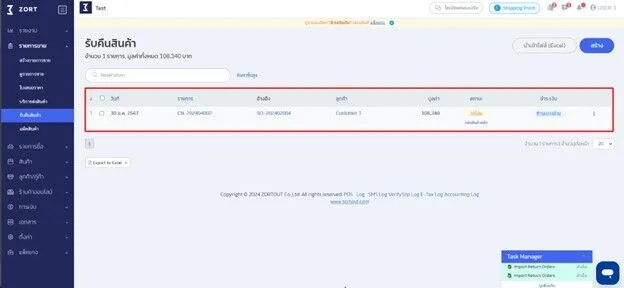 12. ระบบจะทำการสร้างรายการรับคืนให้