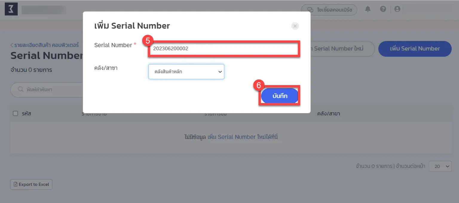 5. ใส่ Serial Number ที่ต้องการเพิ่ม