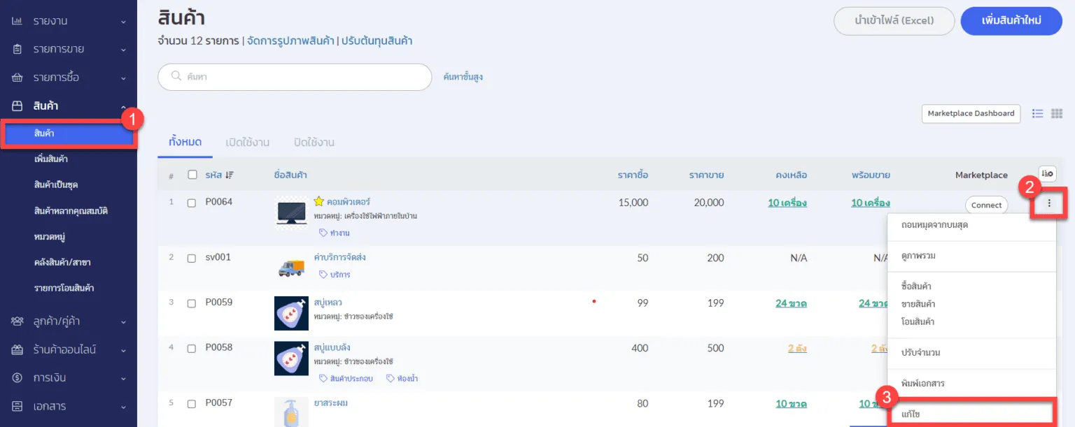 1. ไปที่เมนู “สินค้า” หัวข้อ “สินค้า”