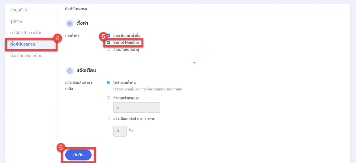 7. หลังจากตั้งค่าเรียบร้อยแล้ว ในเมนูคำสั่งของสินค้า จะเพิ่มเมนู Serial Number ขึ้นมา