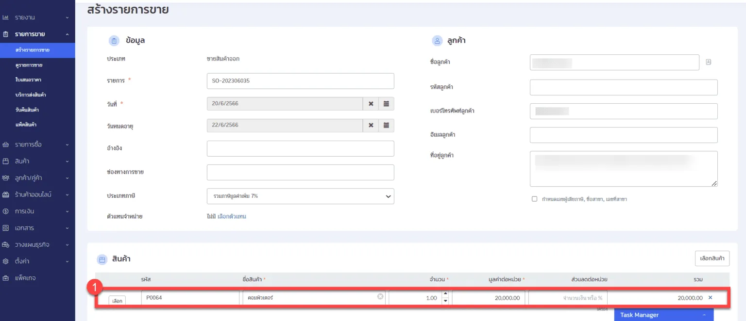 1. สร้างรายการขายสินค้าที่มี Serial Number