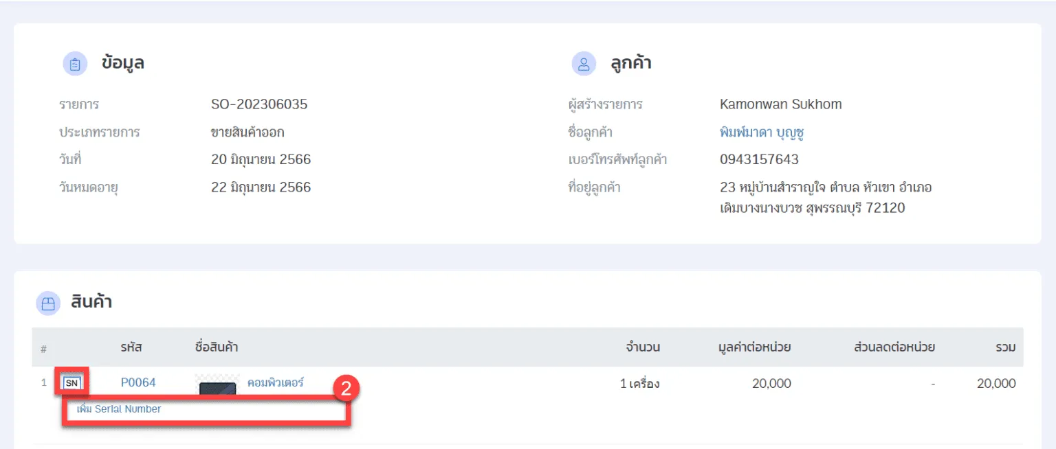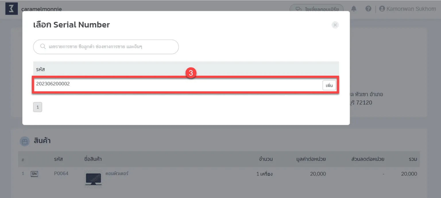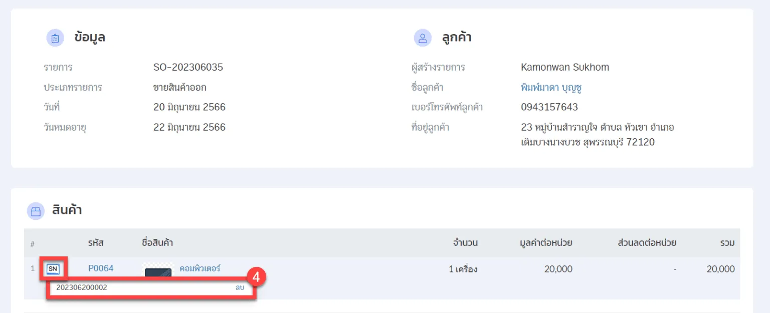 4. หลังจากนั้นปรากฏเลข Serial Number ขึ้นมาด้านหน้ารายการสินค้า
