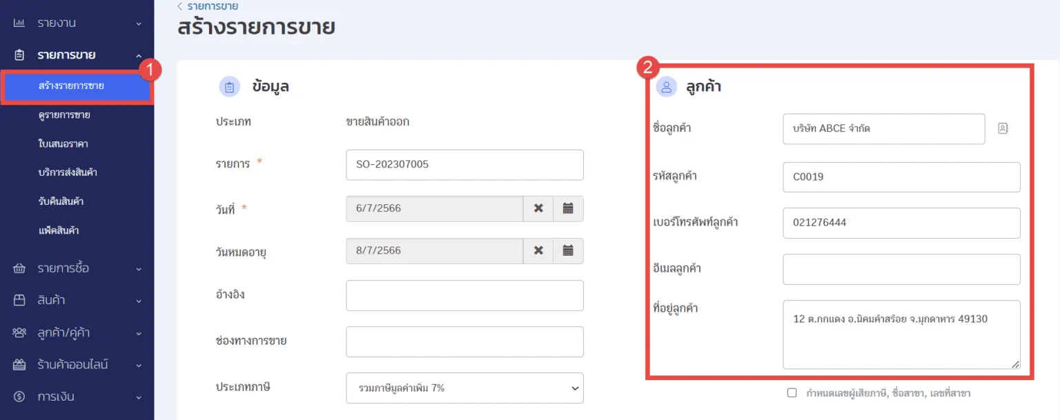 1. ไปที่เมนู “รายการขาย” หัวข้อ “สร้างรายการขาย”
