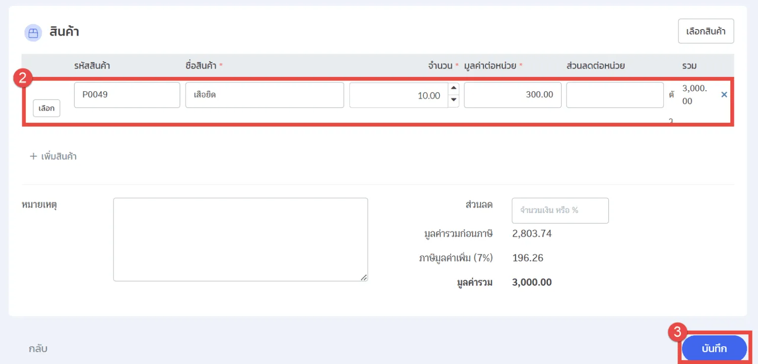 2. กรอกข้อมูลรายการให้ครบถ้วน โดยช่องลูกค้าให้ใส่เป็นข้อมูลของคู่ค้าที่ทำการฝากขาย
